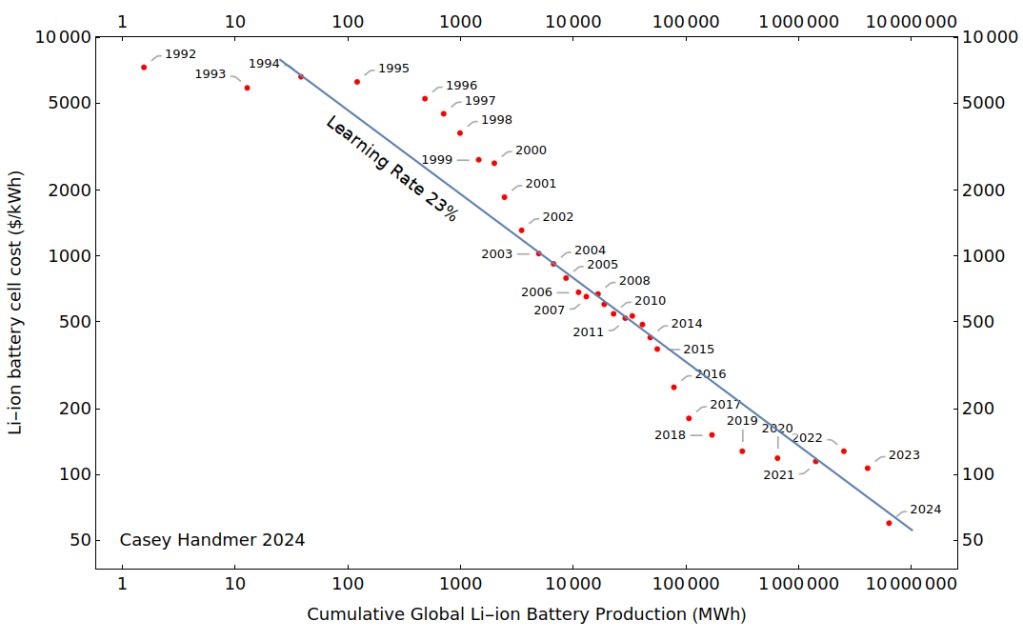 Solar pv cells and batteries are both tumbling down their respective learning curves. More produced → cheaper price → more demand → therefore, more produced. This positive feedback loop drives exponential growth. What will we do with cheaper electricity?