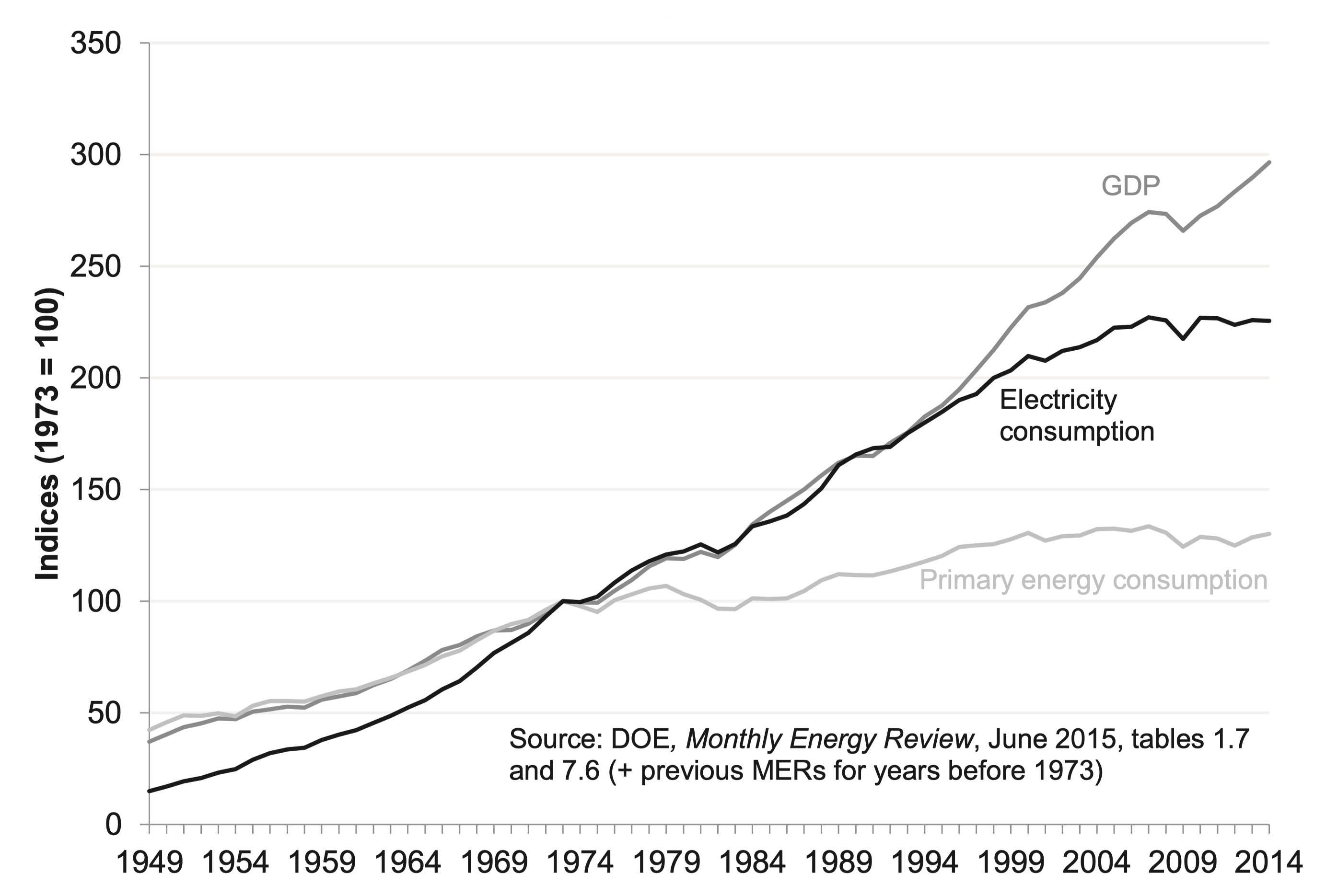 The last few decades—since the 1970’s—are the first time in human history we’ve enjoyed GDP growth in the US without a corresponding growth in energy usage. That said, things haven’t exactly been great since then. We ride on public transit from the 1920’s. We get water via pipes from the 1940’s. We fly in airplanes from the 1960’s. We take high speed rail from... oh wait.